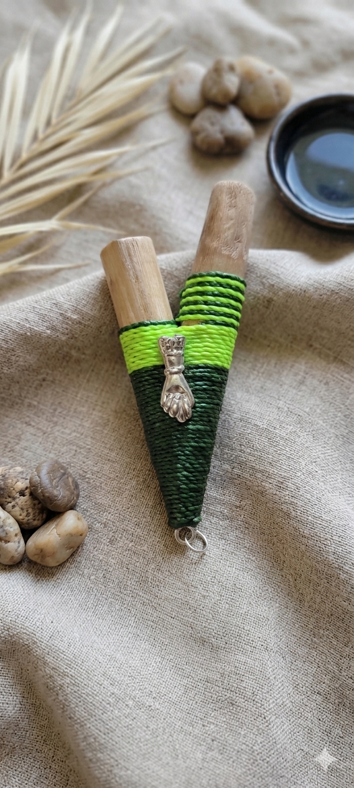 Instrumento e Amuleto: Além de sua função ritualística, é uma joia artesanal que carrega uma forte identidade visual.
